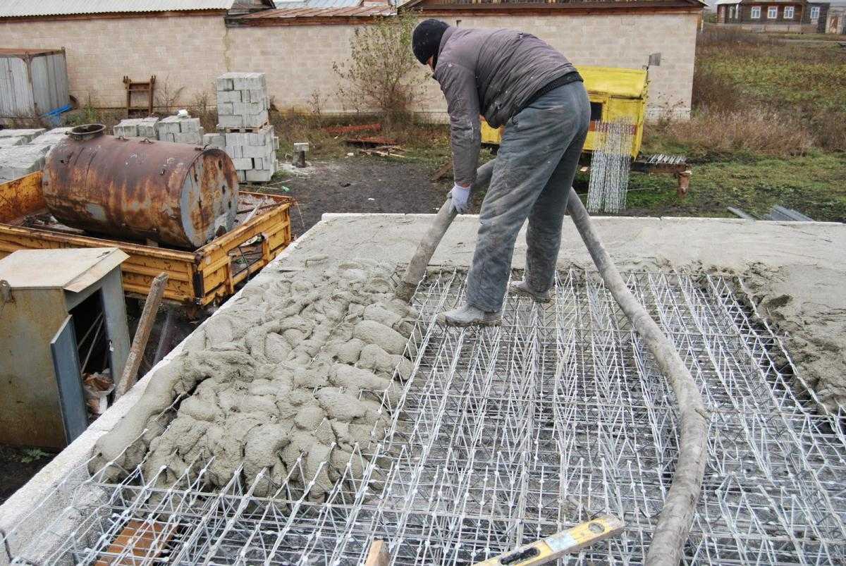 Для армирования лучше использовать не обычный самодельный бетон, а смесь непосредственно из бетономешалки. Если здание перекроют плитой с использованием этого бетона, существует возможность рассчитывать на соответствие его состава определенным стандартам качества. Так, на входе смесь обязательно подвергается проверкам на количество добавок и состав заполнителей. Такая смесь на протяжении длительного времени не расслаивается и отличается повышенной прочностью.