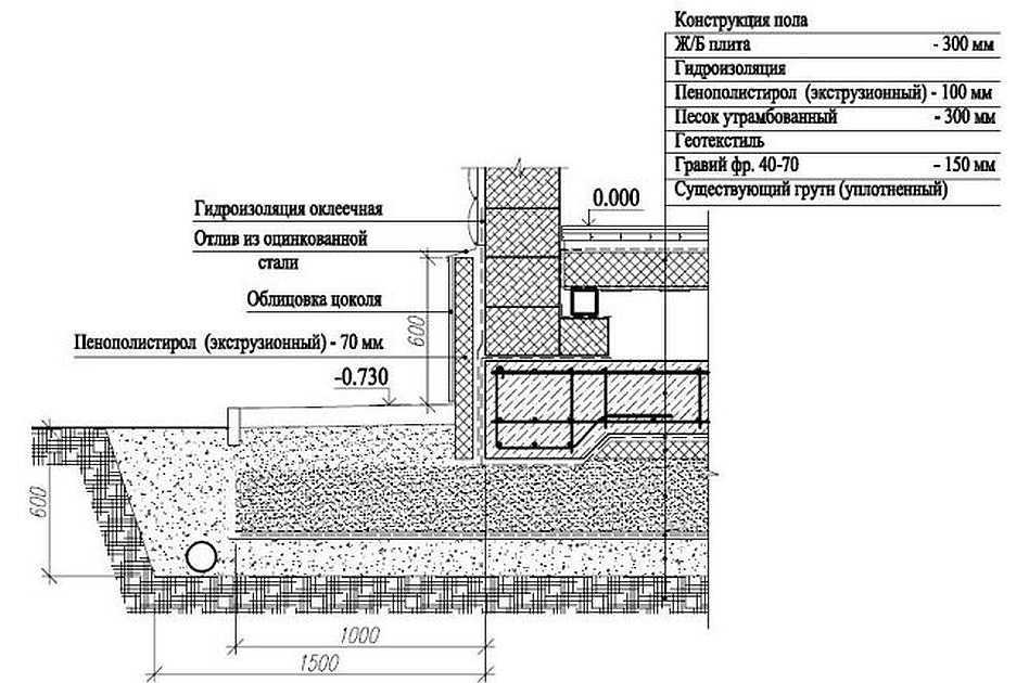 Если в качестве фундамента выбирается плита, ее толщина должна быть не менее 3 см, но и очень толстую брать не стоит. Дополнительно следует предусмотреть дренаж для основания, чтобы в нем и под ним не скапливалось большое количество воды.