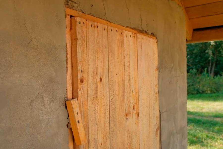 Дверь также следует устанавливать деревянную и строго, чтобы она открывалась наружу. В том случае, если дверной проем получается шире 20-22 см, его следует обязательно дополнительно утеплить. Внимательно осмотрите места соприкосновения стены и двери, там не должно быть никаких щелей.
