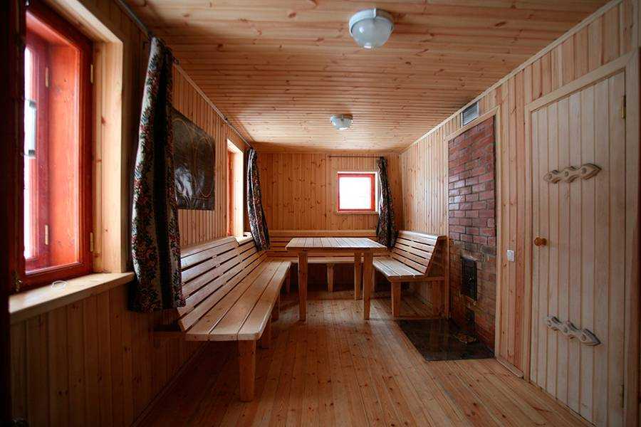 Сухие помещения в бане можно отделать обычной вагонкой. Лучше всего использовать при этом обрешетку, чтобы повысить долговечность стены и материала. Обязательно проштукатуриваются все швы. В парилке требуется полное оштукатуривание стен и дополнительная пароизоляция.