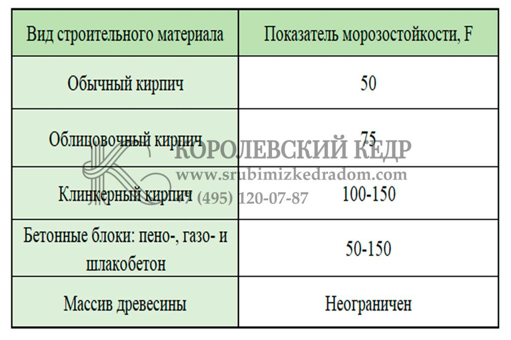 Нормативные характеристики разных типов строительных материалов представлены в таблице.