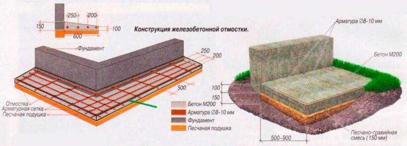 Конструкция железобетонной отмостки