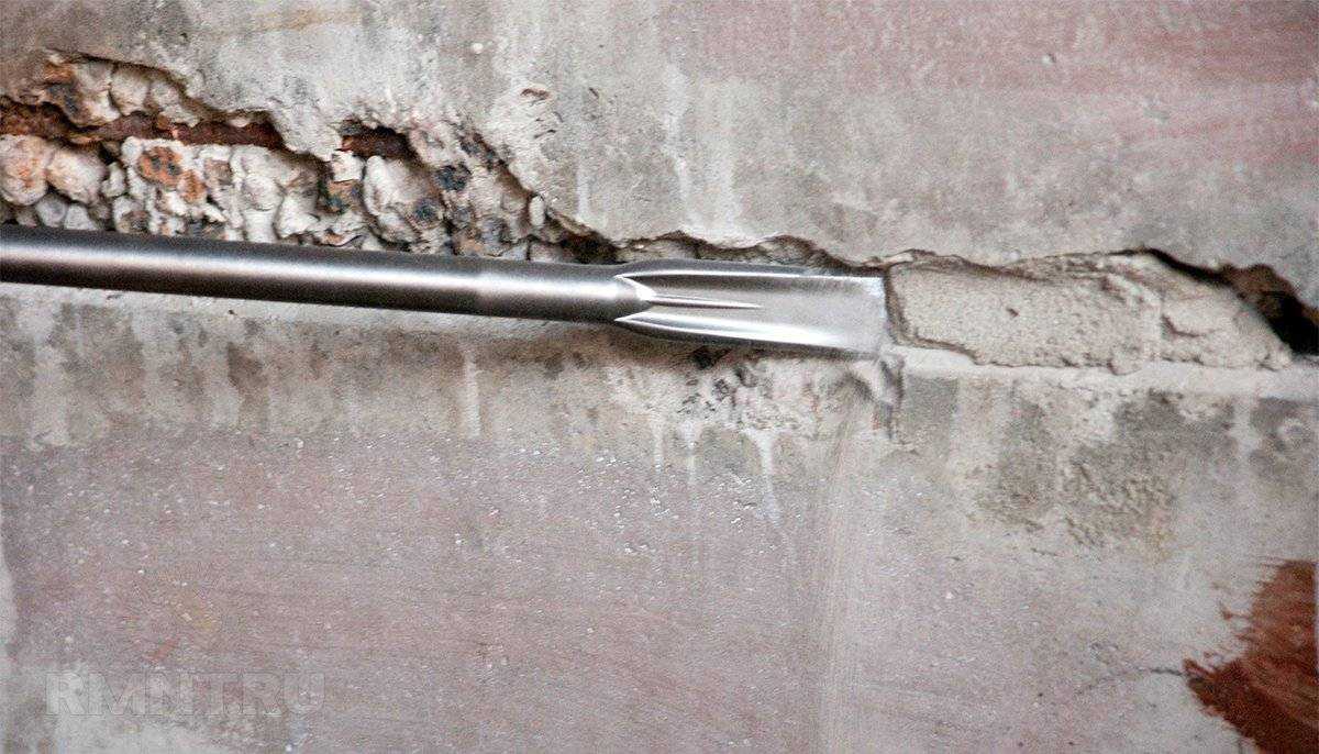 Обычно доступ в подвалы таких зданий затруднен или практически полностью отсутствует подход к конкретному месту. Учитывая это, нужно произвести работы по расширению отверстия, чтобы его можно было заделать сверху