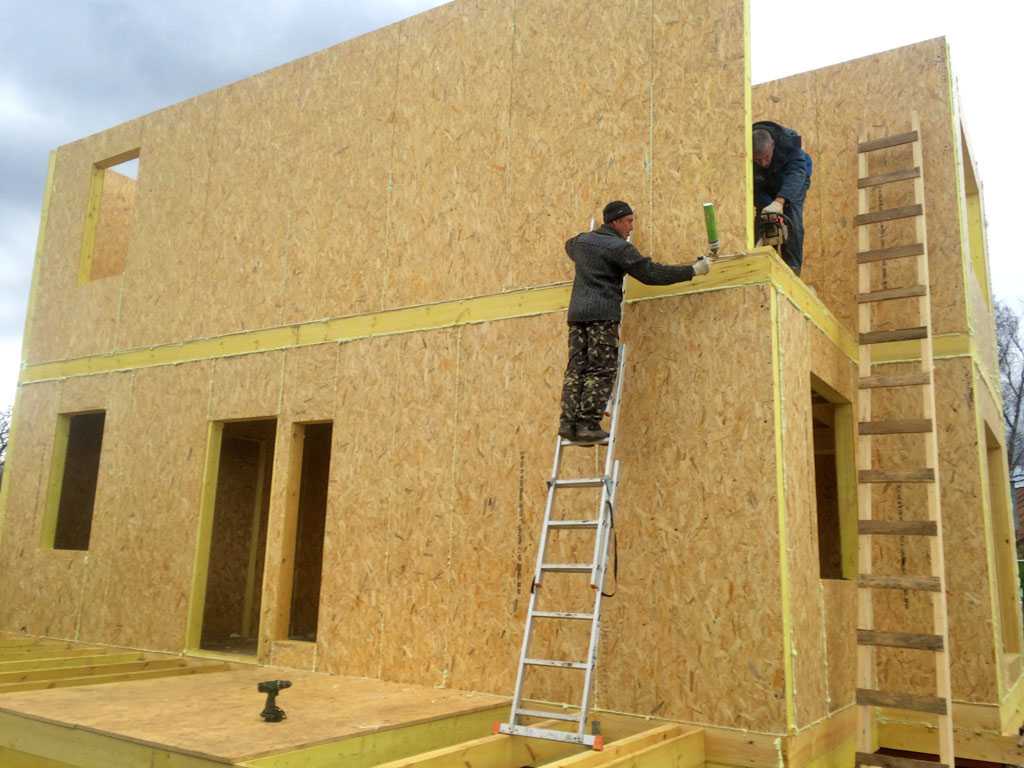 - Для выполнения монтажных работ обязательно нужен хотя бы один помощник. В процессе возведения стен один человек удерживает панель, второй занимается ее фиксацией к деревянному каркасу;