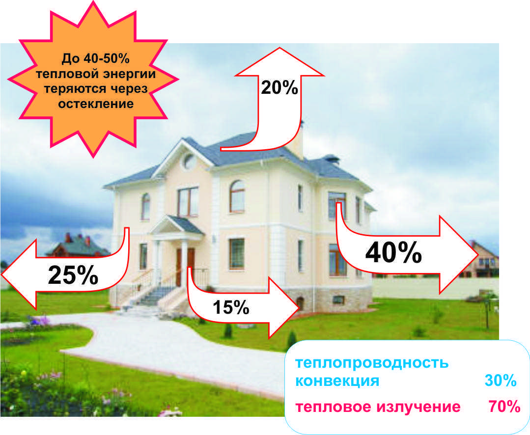 энергосберегающие низкоэмиссионные стеклопакеты позволяют сохранять тепло в квартире и уменьшать затраты на отопление. Уникальные свойства обычное стекло приобретает благодаря напылению веществ, которые пропускают длинноволновое излучение, но задерживают коротковолновое, проще говоря, свет заходит, а тепло не выходит. Сегодня чаще всего используются i-стекла с напылением ионами серебра: они показывают отличные теплоизоляционные свойства, но боятся атмосферных воздействий. K-стекла дешевле, устойчивее к негативным факторам окружающей среды, но с точки зрения сохранения энергии менее эффективны. Энергосберегающим, как правило, является только одно стекло в стеклопакете. Летом оно отлично отражает тепло с улицы, а зимой – не позволяет домашнему теплу выходить из квартиры (см. иллюстрацию). Заполнение камер аргоном позволяет еще больше повысить теплоизоляцию. Подсчитано, что при использовании низкоэмиссионного стекла удается повысить сопротивление теплопередаче однокамерного стеклопакета до 0,56 м²К/Вт, а двухкамерного – до 0,75 м²К/Вт (уровень обычного трехкамерного);