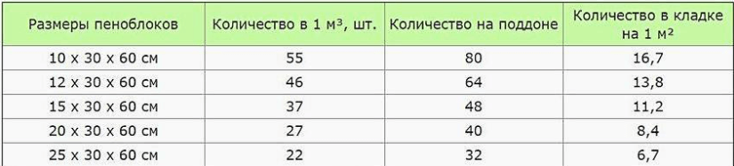 Количество пенобетонной продукции на 1 квадратный метр кладки