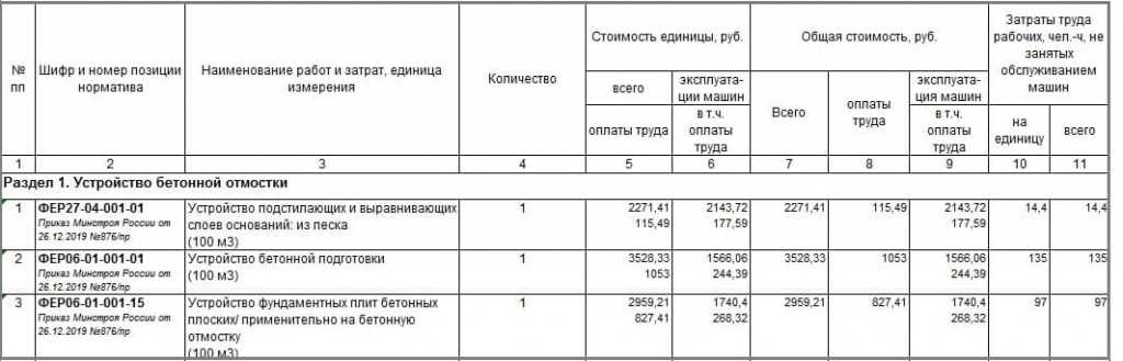Позицией под номером 3 в смете на устройство бетонной отмостки, как видно на рисунке 1, применена норма из того же 6 сборника на устройство бетонных монолитных фундаментов. Также можно заметить, что данная расценка включена применительно и может быть частью сметной формы только в случае точного и полного совпадения состава работ с проектными данными.