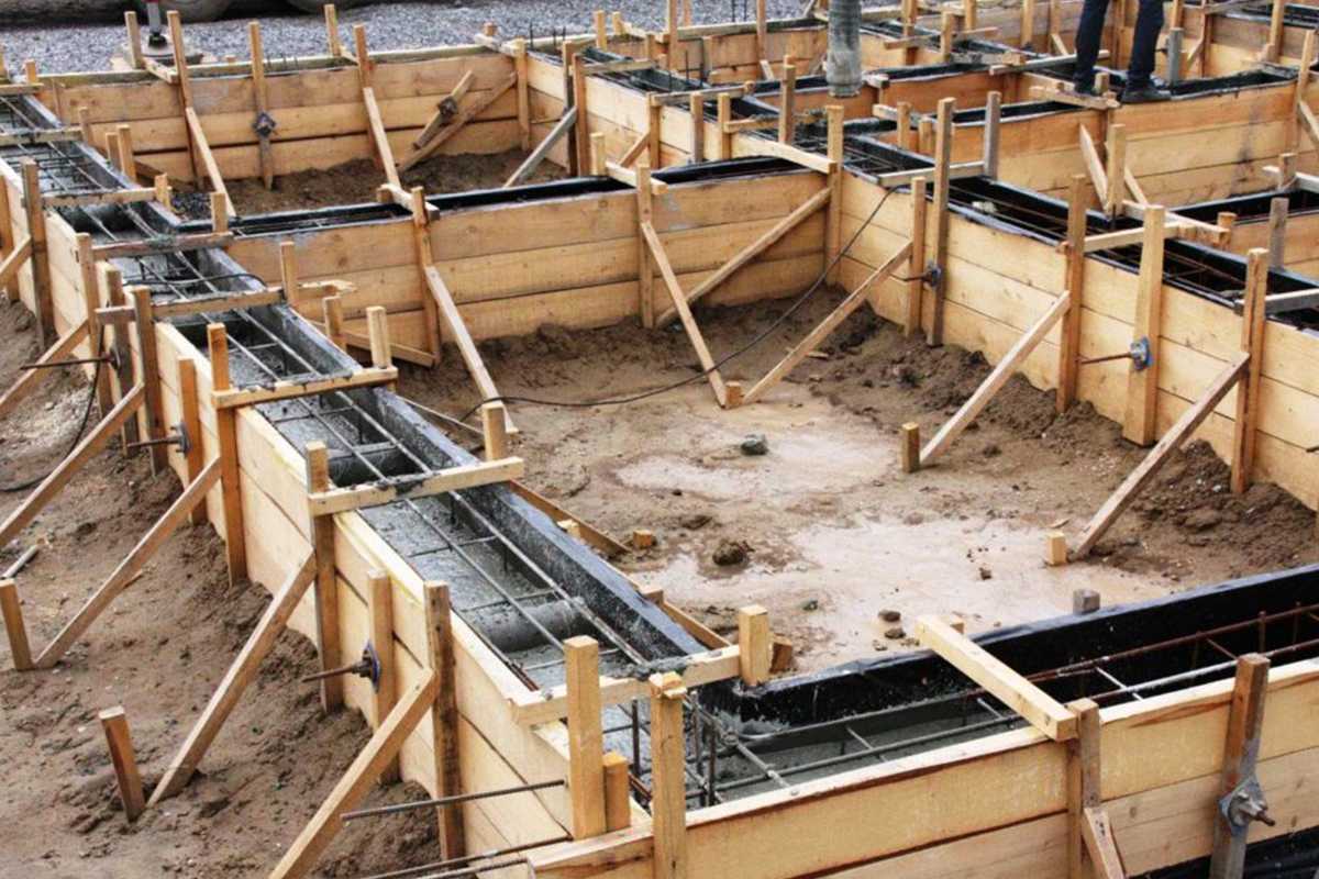 Поверх каждой чаще всего ставят квадратные детали — оголовки. Завершает основу ростверк (обвязка) — решетка из бруса, досок, металлического уголка, швеллера или тавровых ЖБИ балок. Обвязку для буронабивного типа тоже изготавливают прямо на участке. Ставят опалубку, вяжут арматуру и заливают смесь.