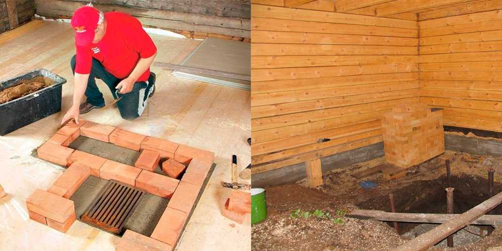 Наряду с этим, многие строители считают, что рассмотренный вариант устарел и не является в достаточной степени безопасным, ввиду чего даже под относительно небольшую печь рекомендуется обустроить отдельное основание, в особенности, если полы в бане сделаны из древесины. К примеру, можно сделать фундамент из кирпича (рекомендации будут приведены в соответствующем разделе). В остальном же решение остается за владельцем