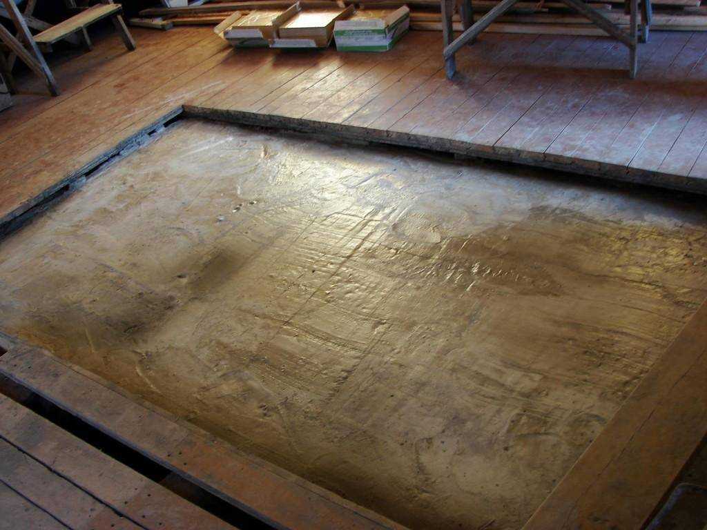 поверх пола на глиняный раствор укладывается асбестовый лист;