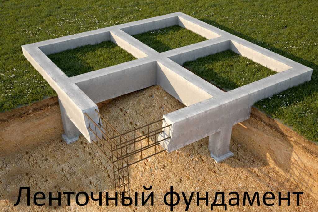 Выглядит как лента, проходящая под несущими стенами – по периметру дома и под внутренними простенками или массивными деталями типа колонн.