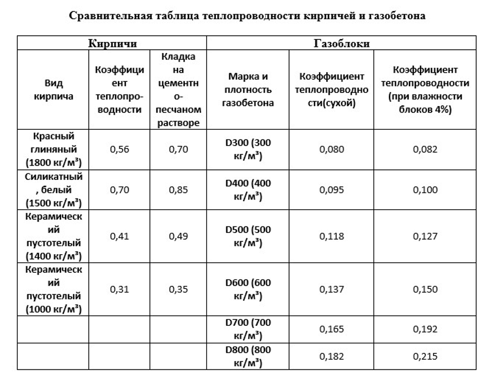 Как видите, показатели теплопроводности у двух материалов очень сильно отличаются