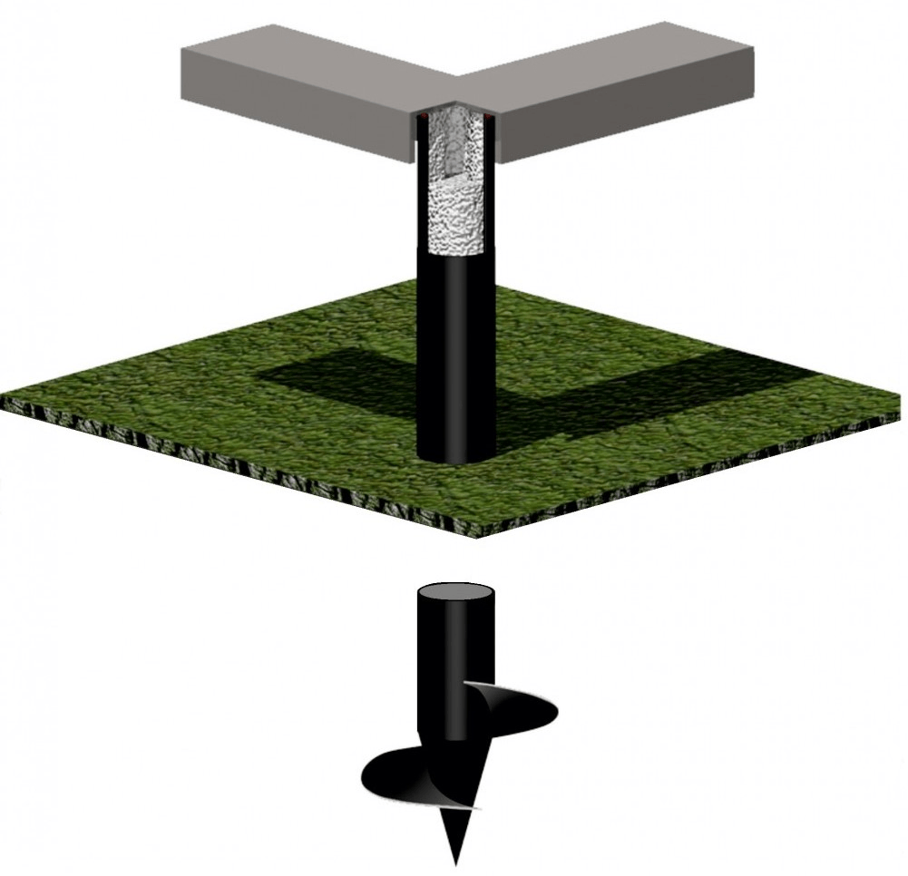 Для устройства оснований под возведение каркасно-щитовых конструкций, бани, хозяйственного или производственного строения на некоторых видах грунтов применяются винтовые свайные конструкции, закручиваемые в землю на необходимую глубину.