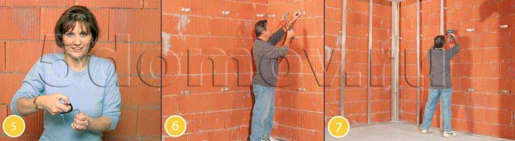 Пошаговая инструкция крепления ГКЛ к неровной поверхности