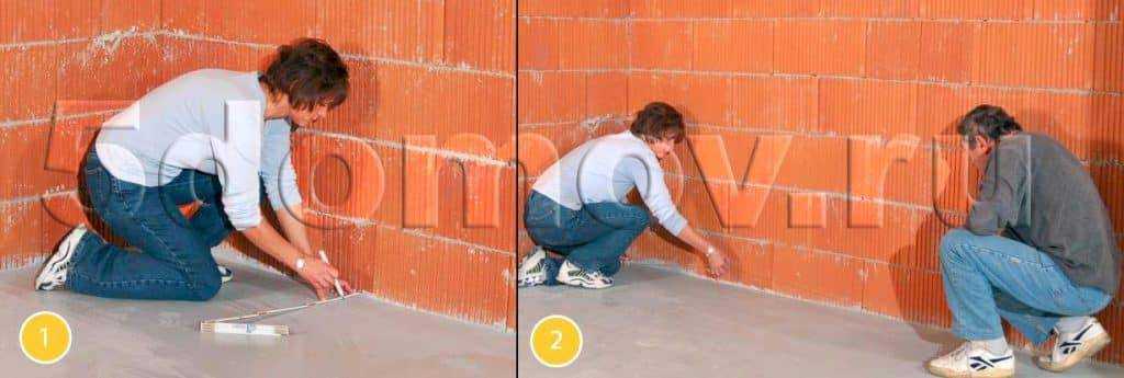 Обязательно очищают комнату и точки разметки от посторонних предметов или пыли. Кроме того, выровнять поверхность стен, пола, потолка. С этой целью использовать цементные растворы.