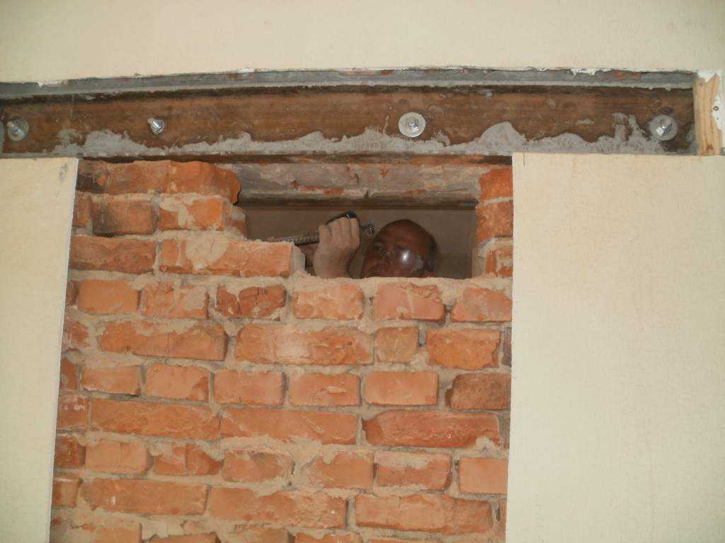 Очень часто в процессе выполнения работ своими руками можно столкнуться с проблемой распределения нагрузки. Для минимизации рисков можно для начала прорубить только верхнюю часть проема, выполнить укрепительные работы и затем продолжить. Также иногда производится установка временных боковых опор, особенно если речь идет о несущих стенах из пеноблоков.
