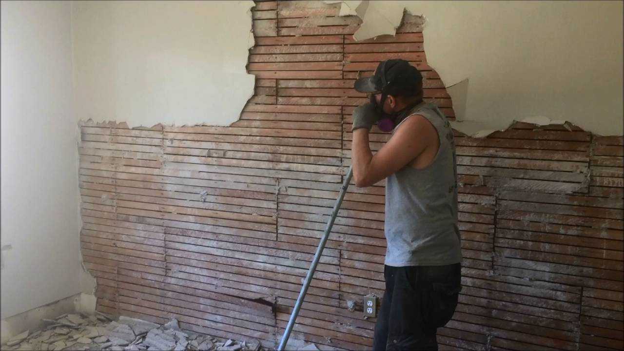 Начните с определения того, есть ли в стене трубы, электропроводка или вентиляционные трубы, которые необходимо удалить. Не демонтируйте части стены с вентиляционными каналами, в случае монтажа вам придется планировать изменение их траектории. Если пол не будет заменен, его необходимо защитить. Фольга и картон не обеспечивают достаточной защиты от падающего мусора, поэтому рекомендуется использовать деревянные панели.