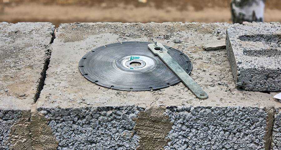 - В процессе выполнения кладки блоки приходится пилить, для этого проще всего использовать болгарку с сегментированными дисками с алмазным напыление. Такие круги меньше греются и не разлетаются. Блок опиливается по периметру, а потом раскалывается топором.