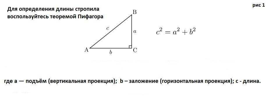 - Таким же способом, умножив поправочный коэффициент на заложение (горизонтальную проекцию), находим длину свеса стропил. Либо можно воспользоваться теоремой Пифагора (см.рис. 1).