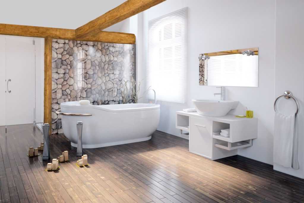 Отделка плиткой, имитирующей деревянный ламинат, также рекомендуется для ванн.
