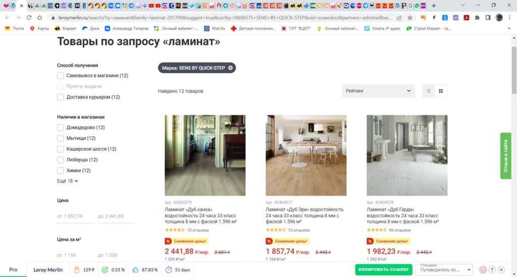 В бюджетной категории ламината, к которым я отнесу полы до 600-700 рублей. Что так же сложно отследить из-за нестабильности цен. Желанием ритейлеров заработать и необходимостью осуществлять хоть какие-то продажи…