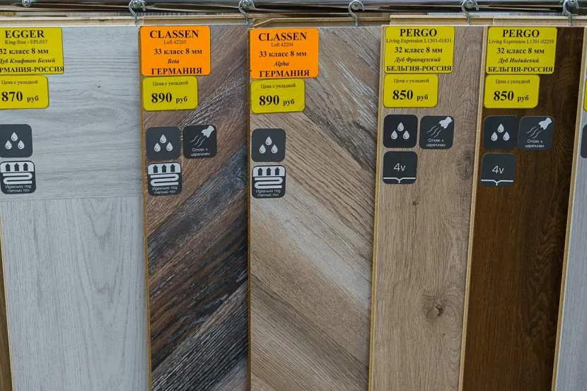 Подобрав подходящий вариант, внимательно изучите маркировку. Там должна быть указана степень восприимчивости к ультрафиолету, красящим пигментам, высоким температурам и другим видам воздействия, а также уровень содержания формальдегида. Перед покупкой обязательно убедитесь в наличии сертификата качества у продавца на выбранный вами ламинат.