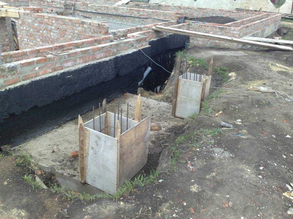 По проекту ширина колон 315 мм, а фундамент нужно делать немного больше. Через пару дней можно снять опалубку.