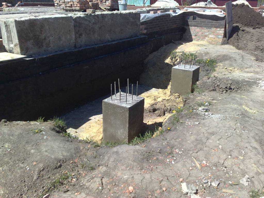 По этому необходимо сделать хороший фундамент под колонны, чтобы он был цельным с фундаментом дома. Для этого мы связываем фундамент колон с фундаментом дома.