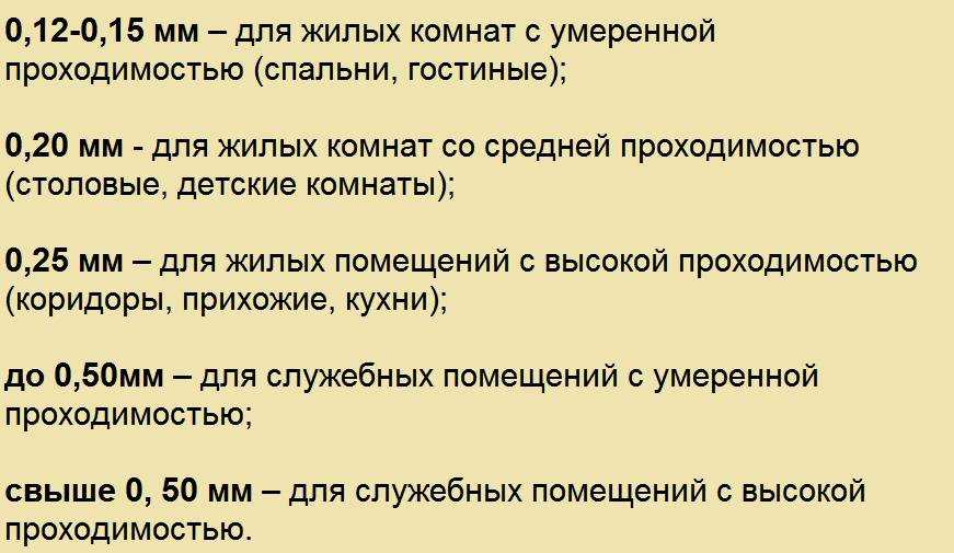 Так как продукция используется в нескольких отраслях, производители подобрали для каждой отдельной категории разный набор качеств. Изготавливаются несколько типов линолеума, подходящих для разных сфер употребления: