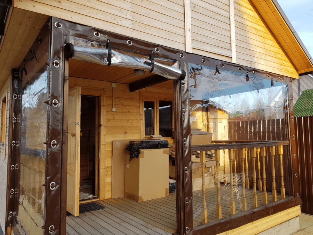 Благодаря своим свойствам и простоте в уходе прозрачные шторы стали отличной альтернативой стеклопакетов для остекления веранд.