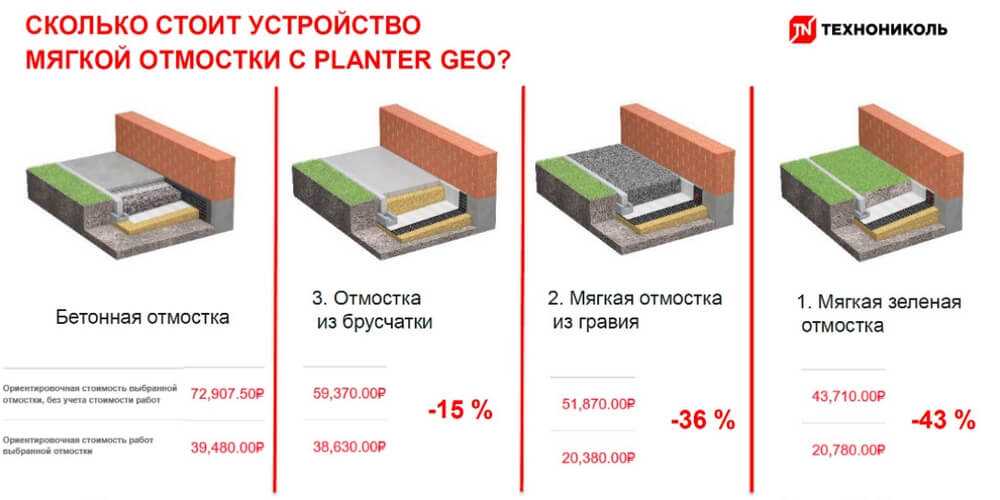 Перед тем, как приступить к устройству мягкой отмостки с мембраной PLANTER Geo от ТЕХНОНИКОЛЬ своими руками, необходимо рассчитать затраты на материалы и инструменты. В этом поможет проектный расчет, который можно выполнить самостоятельно или обратиться за помощью к профессионалам.