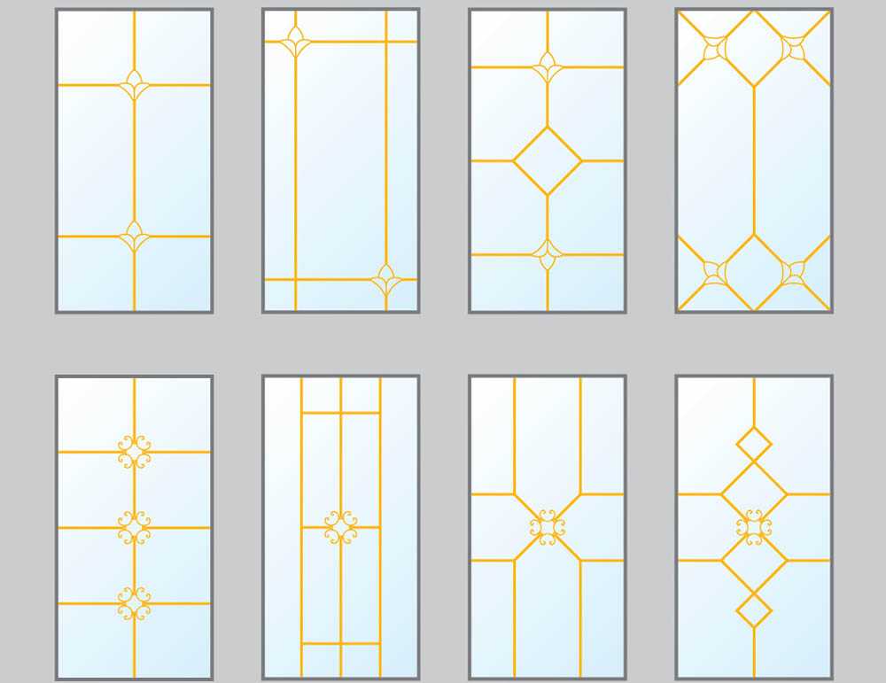 Производители раскладок предлагают большой выбор цветов. Накладки выбираются в соответствии со стилистическим оформлением фасада. Шпросы можно классифицировать по форме:
