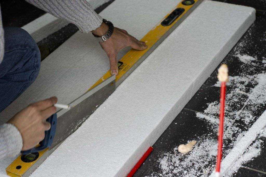 - Выкраиваем детали будущих откосов из пенопласта и соединяем их между собой при помощи клея.