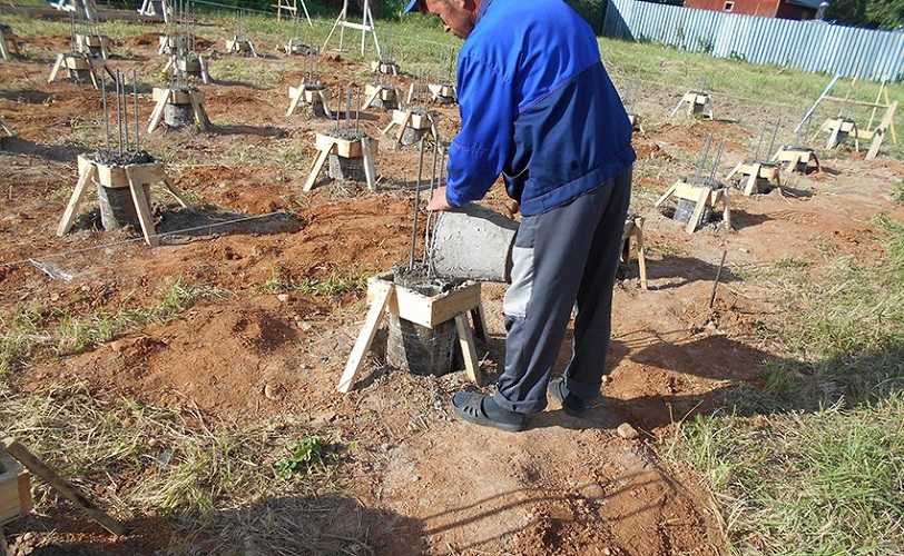 - Сваи заливают бетоном.
