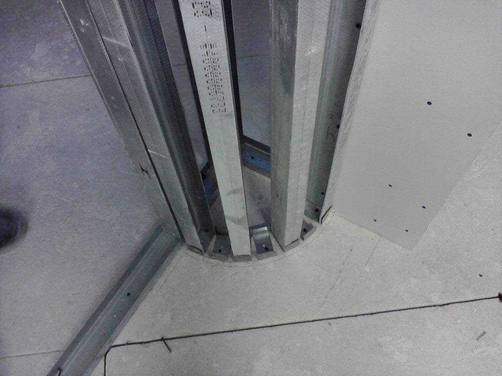 При работе с металлом используют строительные инструменты, которые позволяют менять его форму. Например, слишком широкие, но невысокие потолочные профили 60 х 27 мм можно немного вогнуть внутрь, добившись укрепления перегородки.