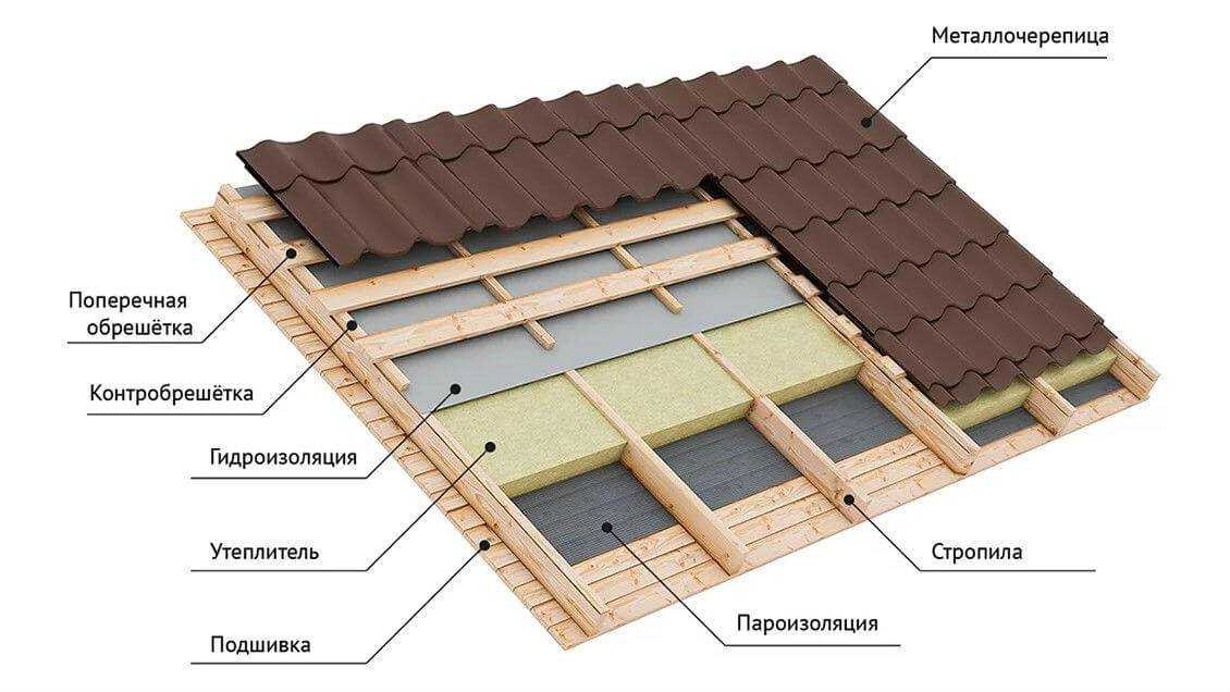 Иногда дополнительно прокладывают слой шумоизоляции. Обязательным он становится в том случае, если основным кровельным материалом является металлопрофиль, так как при попадании на него воды во время дождя создается сильный шум.