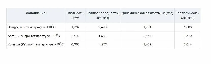 Свойства газов, закачиваемых в камеры между стеклопакетамиИсточник secretbalkona.ru