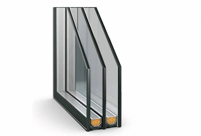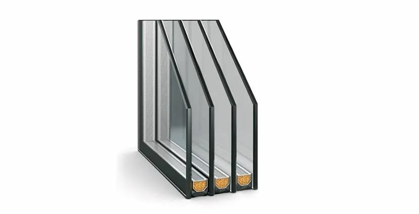- Стеклопакет. Элемент прозрачного заполнения каркасных проемов. Обычно состоит из двух-трех стекол, разделенных дистанционной рамкой с влагопоглощающим материалом. Также есть варианты с одинарным стеклом (иногда несколькими) и непрозрачным заполнением (сэндвич-панель).
