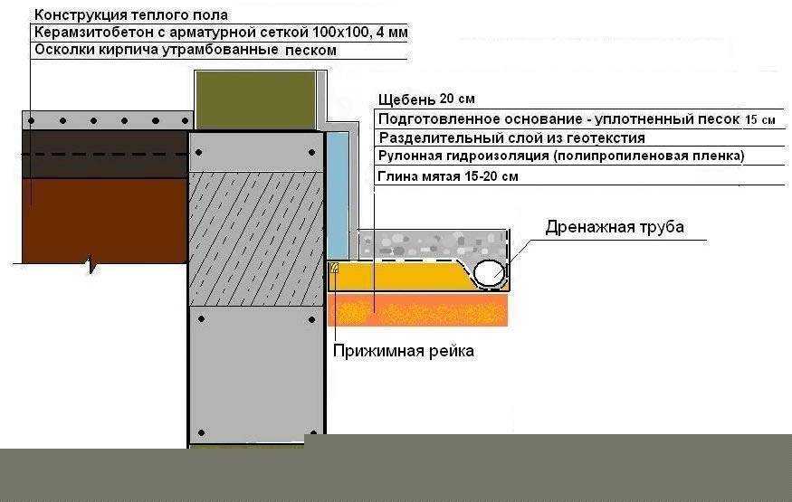Мягкий метод хорош тем, что не подразумевает проведения дополнительных бетонных работ. Однако в этом случае подсыпку нужно выполнять строго послойно, трамбуя каждый слой до соответствующей плотности. Основная трудность в том, чтобы обеспечить как можно более высокую гигроскопичность материала, насыпанного поверх гидробарьера. Также устройство сложной подсыпки требует применения специальных средств, упреждающих размывание и продавливание слоёв.