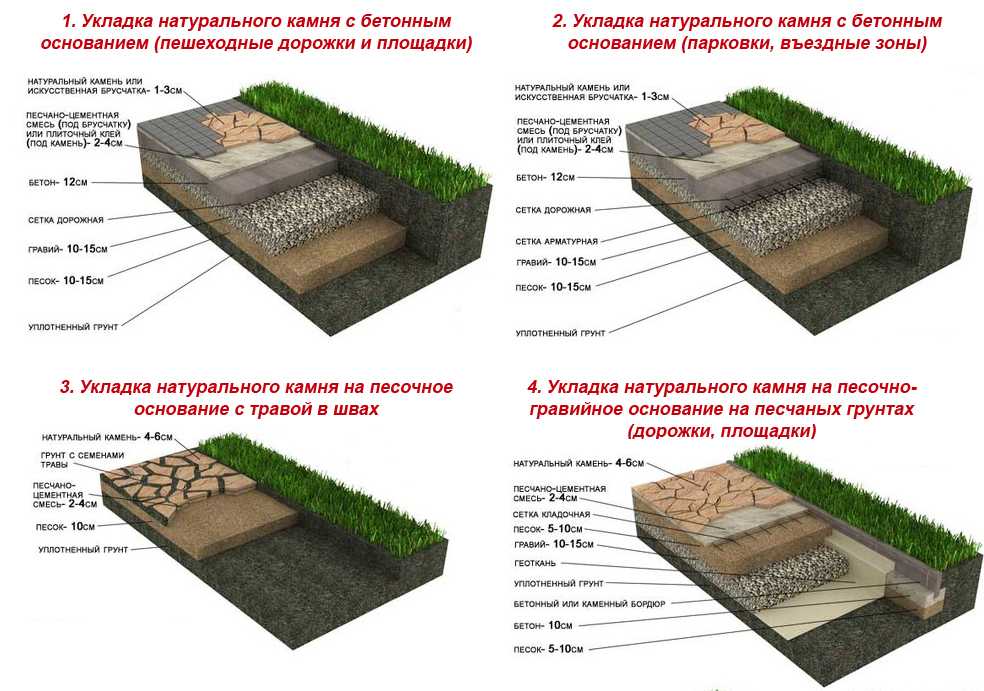 Всего существует три распространенных способа укладки садовых дорожек из камня плитняка своими руками: