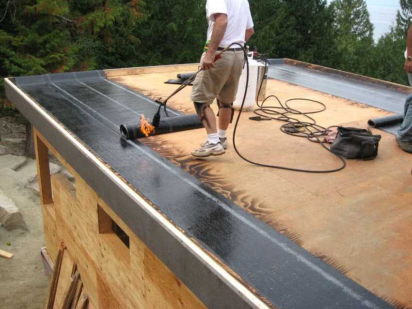 Укладка битума или рубероида на крышу горячим способом