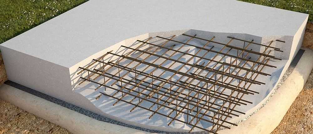 Цельная фундаментная основа выполняется в виде армированной бетонной плиты. База выполняет функцию цокольной основы, что уменьшает объем расходов на постройку чернового пола.