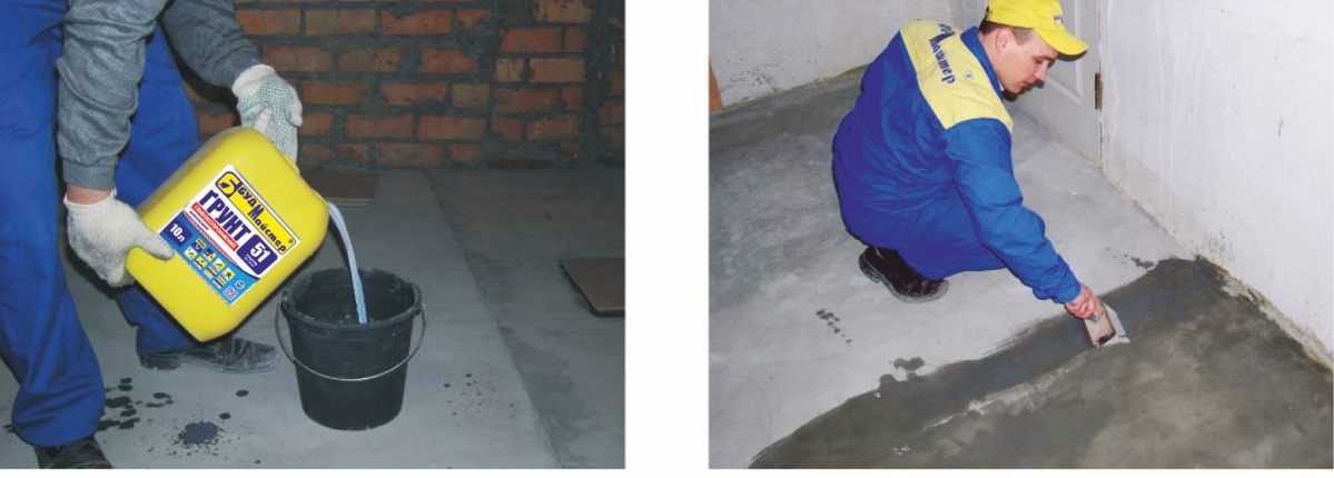 Грунтующая эмульсия наносится щеткой, валиком, или с помощью распылителя. Чем глубже минеральное основание пропитывается грунтовкой, тем больший эффект данного технологического процесса. Грунтующая эмульсия увеличивает адгезию самовыравнивающихся смесей к основанию, уменьшает поглощение основанием воды из свеженанесенного слоя и образование воздушных пузырей на поверхности выравнивающего слоя, улучшает растекаемость нивелирующих смесей.
