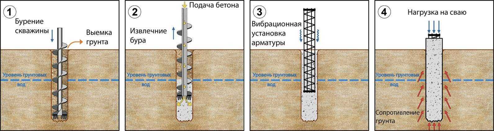 Технология установки буронабивных свай включает в себя следующие этапы: