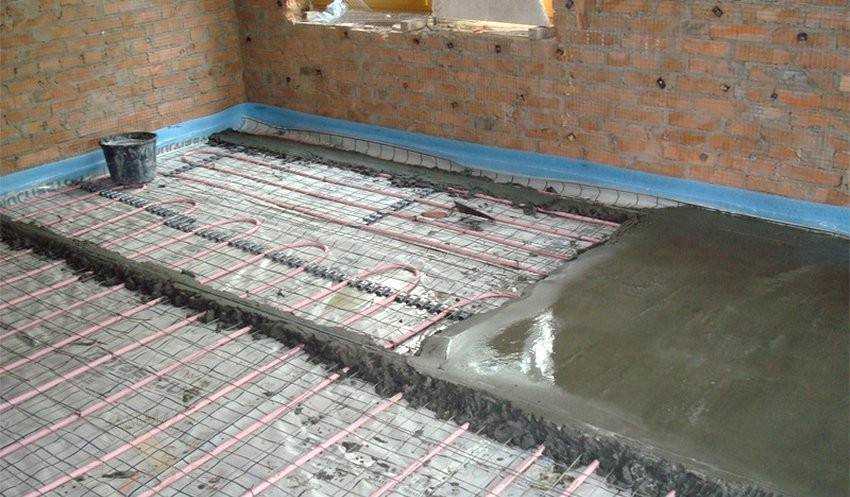 - Бетонная стяжка позволяет монтировать обычную систему «теплый пол».