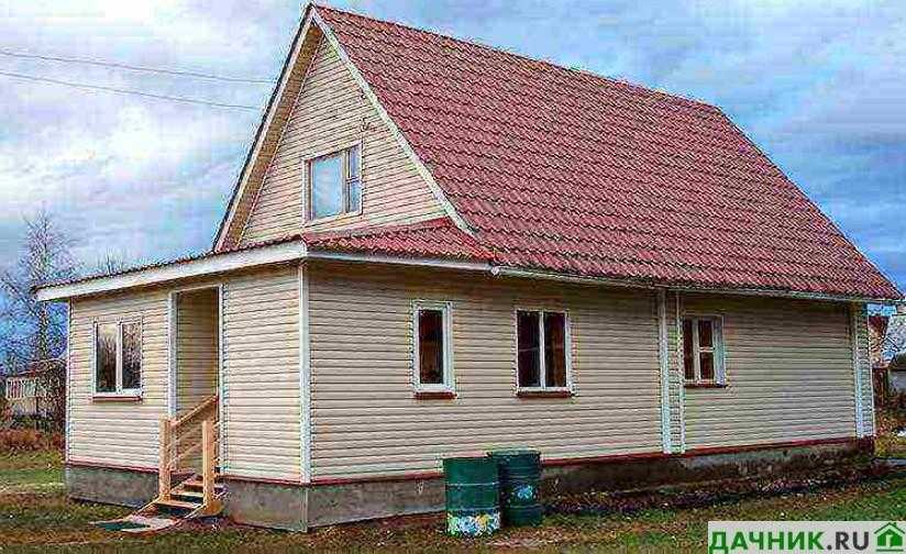 Первый вариант пристройки не назовешь простым в плане возведения. Но зато он самый бюджетный. Суть этого проекта в том, что крыша остается на месте, но только делается немного длине. Эта длина будет соответствовать величине пристройки дому. Основной дом достраивают с одной стороны или с двух. Затем между ними выполняют проход. Тогда общая площадь постройки увеличится на величину новой постройки.