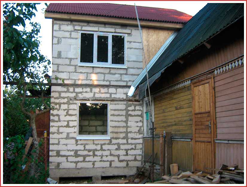 - Пристройка к дому своими руками из пеноблоков будет иметь значительный вес, и после установки она не должна повести за собой основное строение.