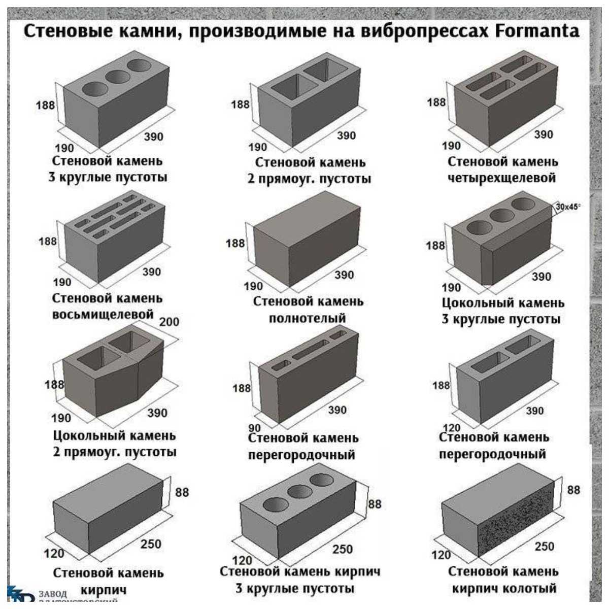 Виды и стандартные размеры блоков из шлакобетонной смеси