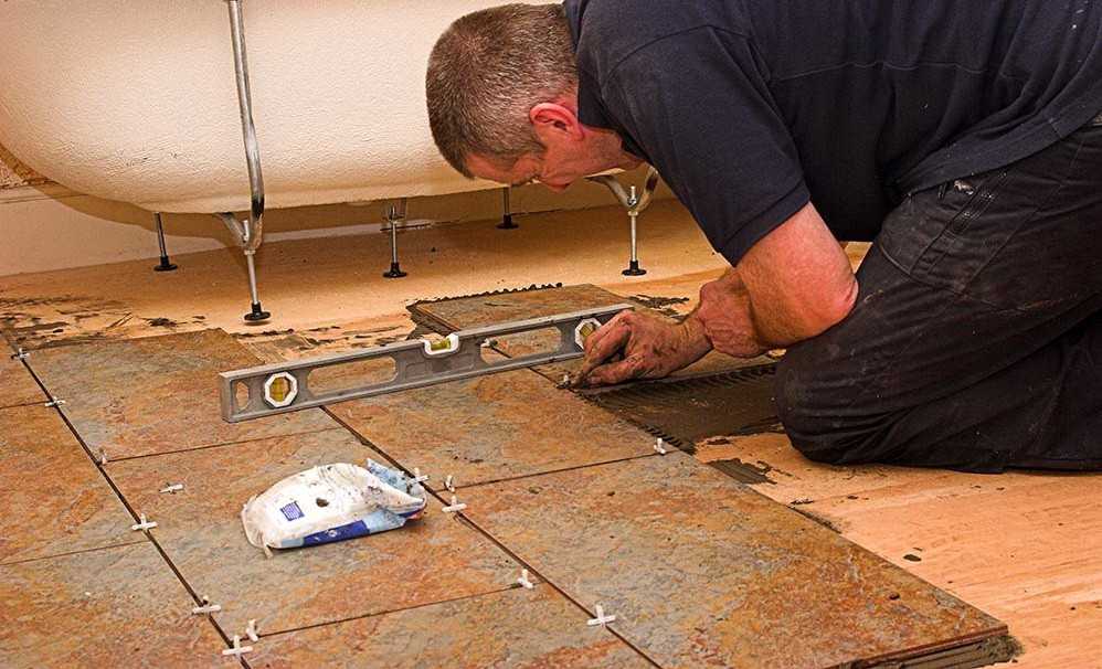 Допускается монтаж при условии, что неровность на полу составляет не выше 5 миллиметров на метре и она плавно сходит на нет. Иначе, модули повредятся и сместятся. Трещины заливаются цементным раствором. - Многие плиты проклеиваются полностью, поэтому перед установкой стоит обработать пол полиуретановой пропиткой, чтобы материалы лучше схватывались друг с другом.