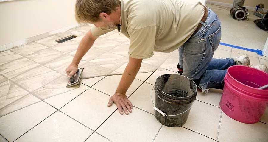 Керамическая плитка также укладывается на черновое бетонное основание. Класс износостойкости керамического материала должен быть около 5. Перед укладкой плитки стяжка дважды прогрунтовывается и очищается от пыли. Строительный клей для фиксации мозаики готовят заранее и оставляют на некоторое время.